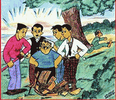 “Before distributing the money,” said the banker, “I would like your attention. “Now, the basis of all money is gold. And the gold stored away in the vault of my bank is my gold. Consequently, the money is my money. Oh! Don't look so discouraged. I'm going to lend you this money, and you're going to use it as you see fit. However, you'll have to pay interest. Considering that money is scarce here, I don't think 8% is unreasonable.” “Oh, that's quite reasonable, Mr. Oliver.” “One last point, my friends. Business is business, even between pals. Before you get the money, each of you is going to sign a paper. By it you will bind yourselves to pay both interest and capital under penalty of confiscation of property by me. Oh! This is a mere formality. Your property is of no interest to me. I'm satisfied with money. And I feel sure that I'll get my money, and that you'll keep your property.” “That makes sense, Mr. Oliver. We're going to work harder than ever in order to pay you back.” “That's the spirit. And any time you have a problem, you come and see me. Your banker is your best friend. Now here's two hundred dollars for each one of you.” And our five brave fellows went away, their hands full of dollar bills, their heads swimming with the ecstasy of having money. 9. A problem in arithmetic
