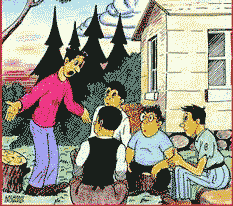 “Money's scarce on the island, fellow, because you take it away from us! We pay you and pay you, and still we owe you as much as at the beginning. We work our heads off! We've the finest land possible, and yet we're worse off than before the day of your arrival. Debts! Debts! Up to our necks in debts!” “Oh! Now boys, be reasonable! Your affairs are booming, and it's thanks to me. A good banking system is a country's best asset. But if it is to work beneficially, you must have faith in the banker. Come to me as you would to a father... Is it more money that you want? Very well. My barrel of gold is good for many thousands of dollars more. See, I'm going to mortgage your latest acquisitions, and lend you another thousand dollars right now.” “So! Now our debt goes up to $2000! We are going to have twice as much interest to pay for the rest of our lives!” “Well, yes — but I'll lend you more whenever the value of your property increases. And you'll never pay anything but the interest. You'll lump all your debts into one — what we call a consolidated debt. And you can add to the debt, year after year.” “And raise the taxes, year after year?” “Obviously. But your revenues also increase every year.” “So then, the more the country develops each year because of our labor, the more the public debt increases!” “Why, of course! Just as in your country – or in any other part of the civilized world for that matter. The degree of a country's civilization is always gauged by the size of its debt to the bankers.” 14. The wolf devours the lambs