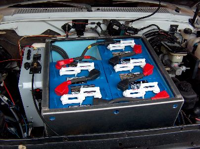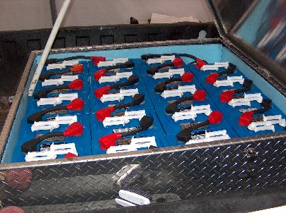 Rear Battery Box with lid off 19 deep cycle 6 volt batteries |